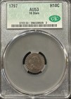 1797 16 STARS DRAPED BUST HALF DIME CACG AU53