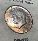 Tidy House Products~2 1964 Kennedy Silver Half Dollars~Colorful Tone~Flyer/Env.