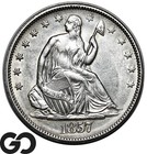 1857 Seated Liberty Half Dollar, Nice White Choice AU++/Unc, Tough