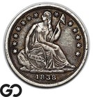 1837 Seated Liberty Half Dime, No Stars, Small Date, Scarce Collector Coin