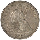 The early years of the Seated Liberty series bear no motto above the eagle on the reverse. These coins, particularly those from the 1840s, are highly collectible for their historical significance and scarcity.